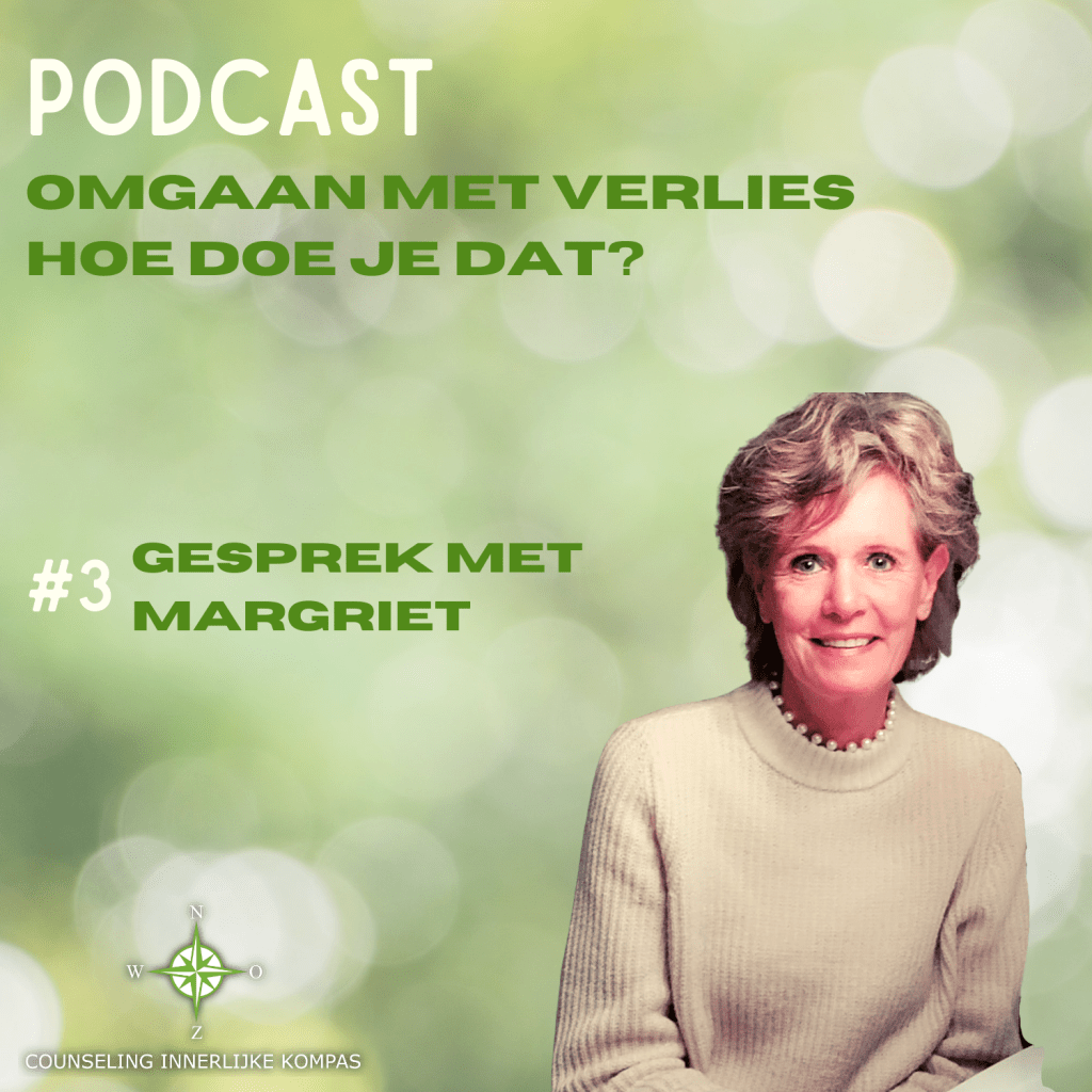 Derde aflevering van mijn podcast serie “Omgaan met verlies hoe doe je dat?” In deze aflevering interview ik Margriet van de Aa. Margriet heeft heel veel meegemaakt in haar leven, verschillende keren verlies van gezondheid en verlies van haar partner. Ik heb grote bewondering voor haar hoe ze met haar tegenslagen en verliezen nog steeds positief in het leven staat. In deze podcast deelt ze haar levensverhaal en hoe ze haar kracht heeft gevonden. Ze is een prachtig voorbeeld voor anderen die zich in een soortgelijke situatie bevinden. Deze aflevering geeft je inzichten en handvatten hoe je met deze en soortgelijke verliezen kunt omgaan.