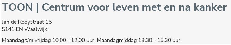 | Locatie: | TOON | Centrum voor leven met en na kanker. |